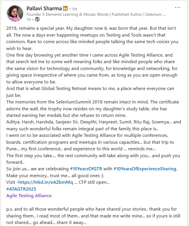 Such journeys can never be covered alone, our Speakers, Delegates, Keynote Addresses, and our Organising team has been the integral part of making Global Testing Retreat an event to look out for.