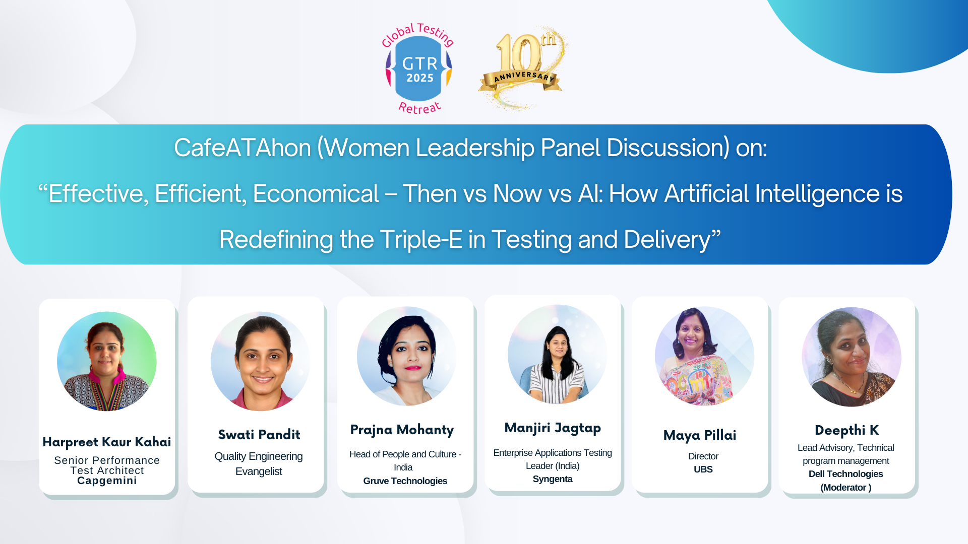 CafeATAhon (Women Leadership Panel Discussion) on: “Effective, Efficient, Economical – Then vs Now vs AI: How Artificial Intelligence is Redefining the Triple-E in Testing and Delivery”