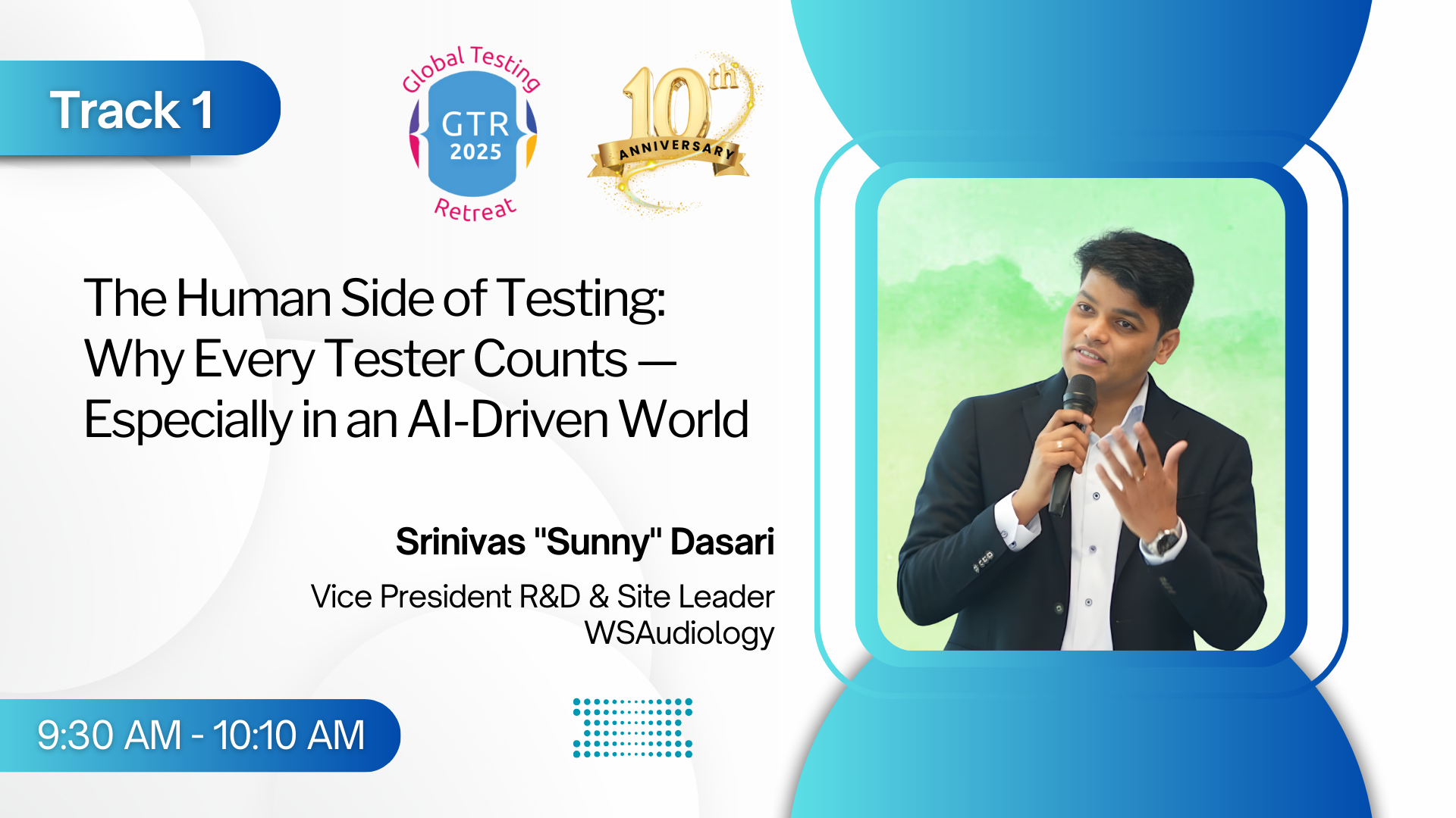 Keynote Topic: The Human Side of Testing: Why Every Tester Counts — Especially in an AI-Driven World by Srinivas "Sunny" Dasari